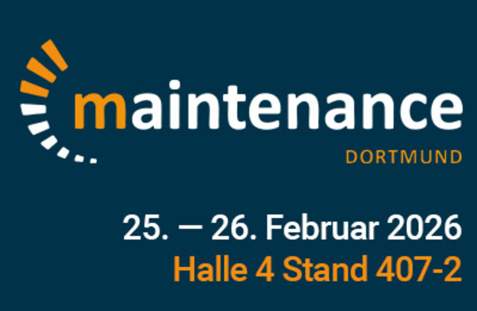25. bis 26. Februar 2026 Messe maintenance Dortmund 2026 Wir freuen uns auf Ihren Besuch. Auf der Fachmesse für Instandhaltung 2026. Infos & Anmeldung